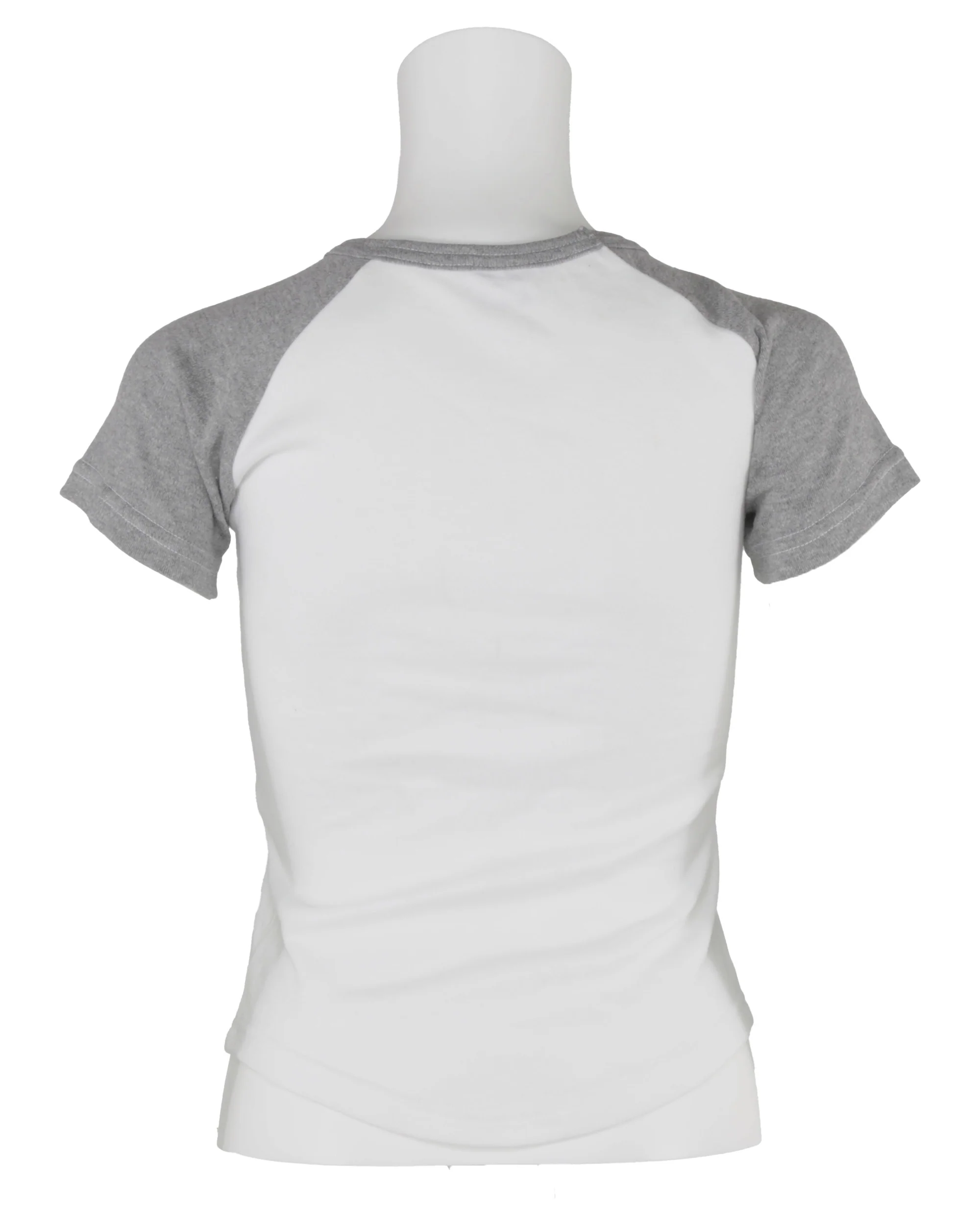 This white T-shirt with gray sleeves features the iconic “PLANET HOLLYWOOD / LONDON” logo printed at the center of the chest. On the left breast, Mel B has signed in black marker with the handwritten inscription “Lots of Love / Spice girl, Mel / B”