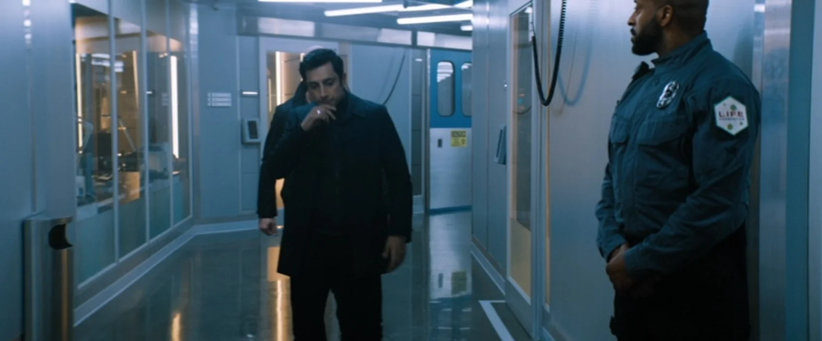 Patch created by the production for use in "Venom" (2018). Six-sided white patch with a green border on the front. Text on front reads "LIFE / FOUNDATION" over a collection of hexagons. Hexagons are mostly white with four green hexagons scattered throughout the collection. Back of patch is covered in the hook side of Velcro.